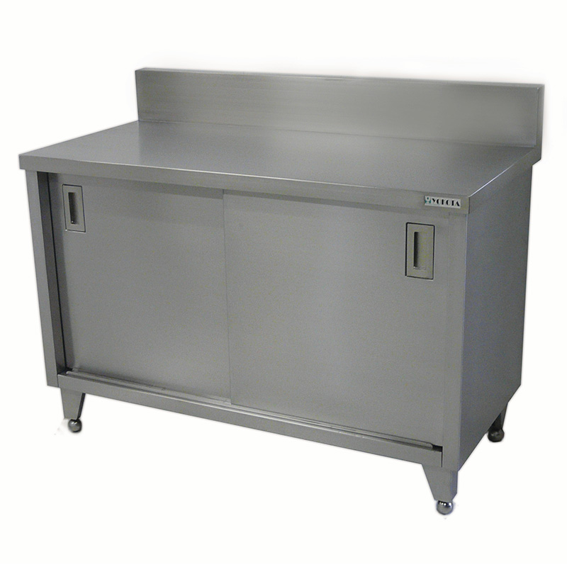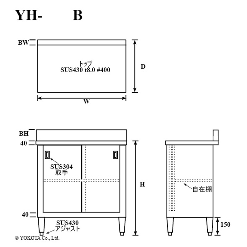 ステンレス製調理台。引戸付き。バックガード付き。12サイズをご用意。
