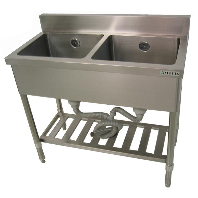 ステンレス製二槽シンク。バックガード有り。11サイズをご用意。