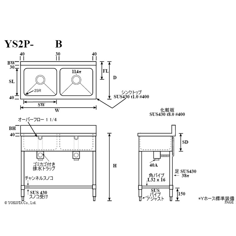 | 型番 | W (mm) | D (mm) | H (mm) | BH (mm) | BW (mm) | SW (mm) | SL (mm) | SD (mm) | FL (mm) | 価格 | 数量 | |