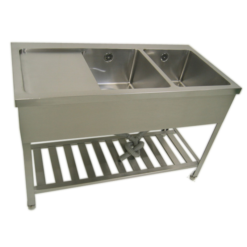 ステンレス製二槽シンク。水切付き。14サイズをご用意。
