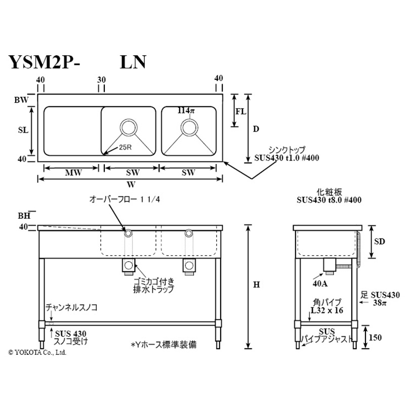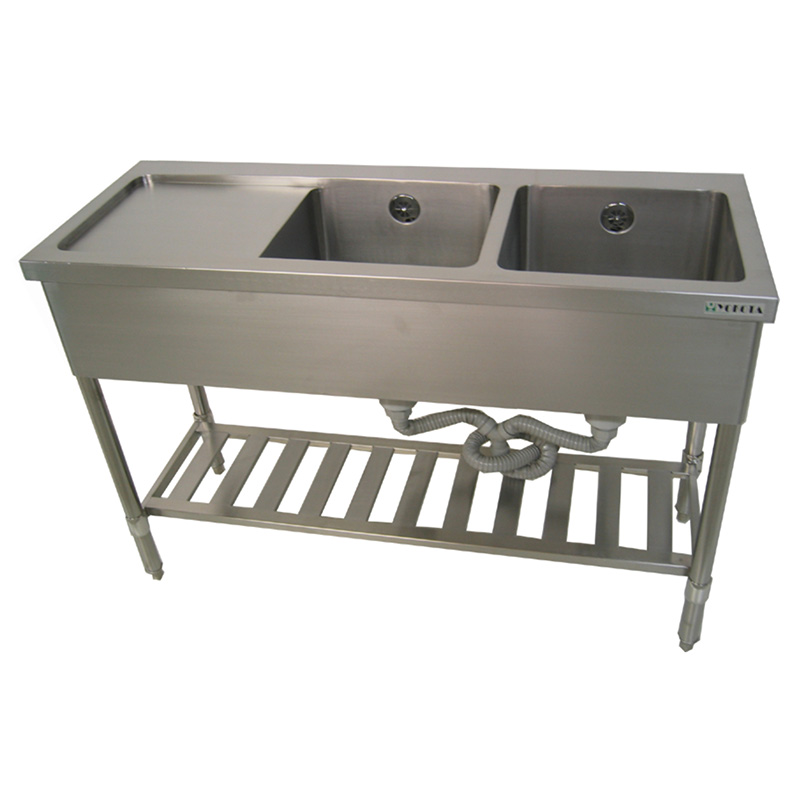 ステンレス製二槽シンク。水切付き。14サイズをご用意。