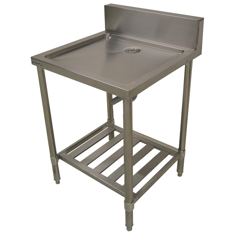 業務用水切台 バックガード付き。壁際設置に最適なバックガード付きモデル。パイプ脚タイプで安定性に優れています。SUS430ステンレス製で、飲食店や施設での調理作業に適しています。サイズバリエーション豊富で、設置スペースに合わせてお選びいただけます。