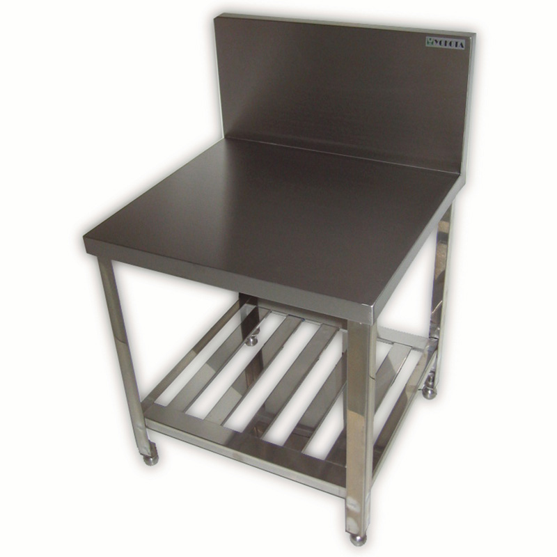 業務用ガスコンロ台 バックガード付き。壁際設置に最適なバックガード付きモデル。SUS430ステンレス製で、飲食店や施設でのガス調理機器設置に適しています。サイズバリエーション豊富で、設置スペースに合わせてお選びいただけます。
