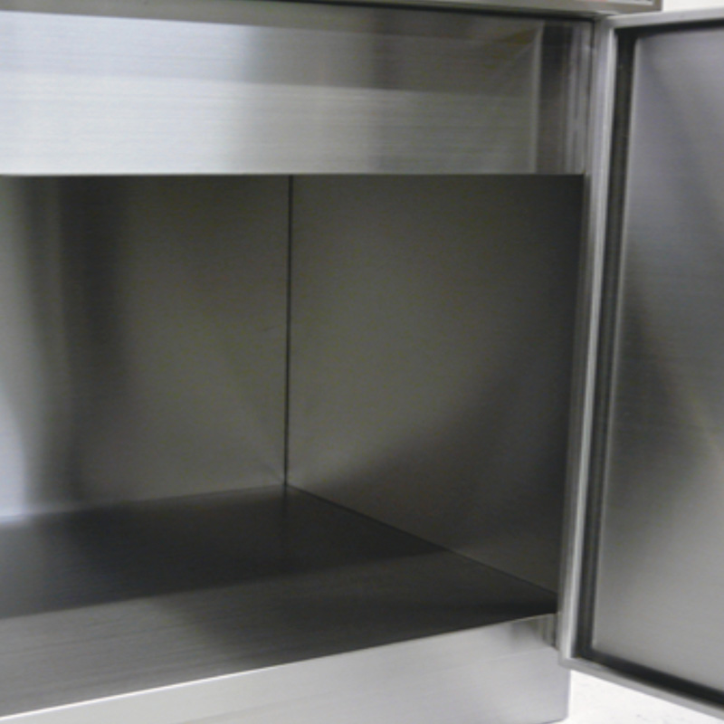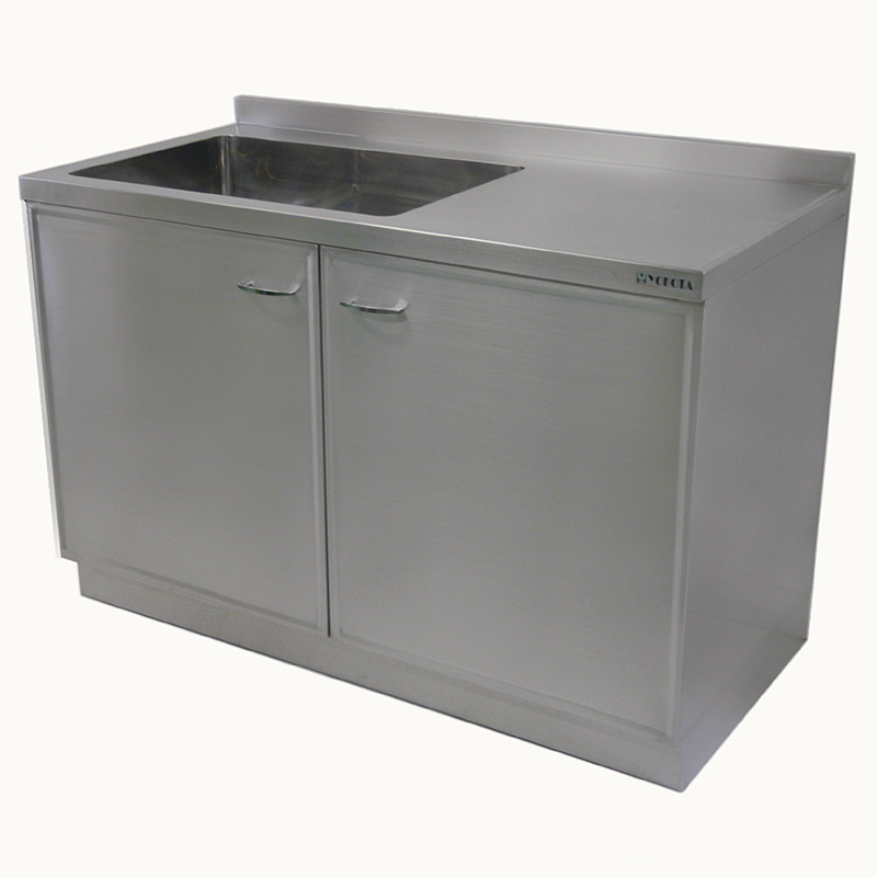 ステンレス製システムキッチンシンク。高さ2種類(800mm/850mm)から選択可能。オプションでナイフラック(¥10
