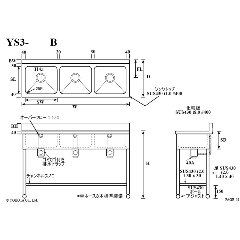 | 型番 | W (mm) | D (mm) | H (mm) | BH (mm) | BW (mm) | SW (mm) | SL (mm) | SD (mm) | FL (mm) | 価格 | 数量 | |