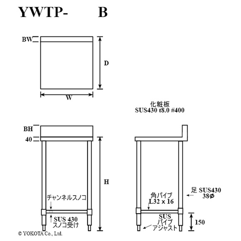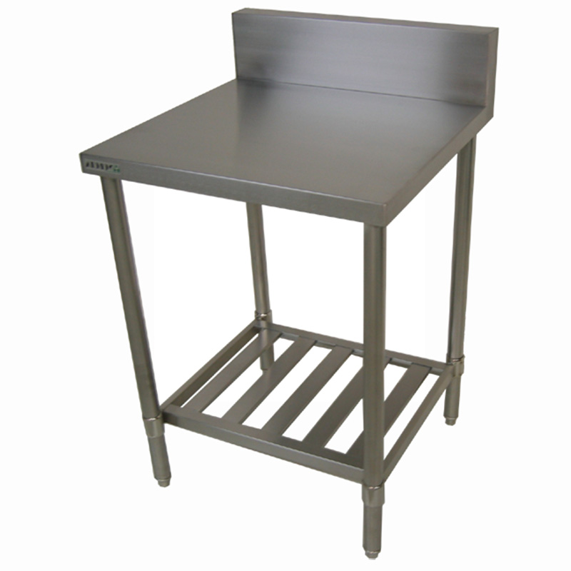 業務用作業台 BG型 パイプレッグ。バックガード付きで壁際設置に最適。パイプ脚タイプで安定性に優れています。SUS430ステンレス製で、飲食店や施設での調理作業に適しています。サイズバリエーション豊富で、設置スペースに合わせてお選びいただけます。